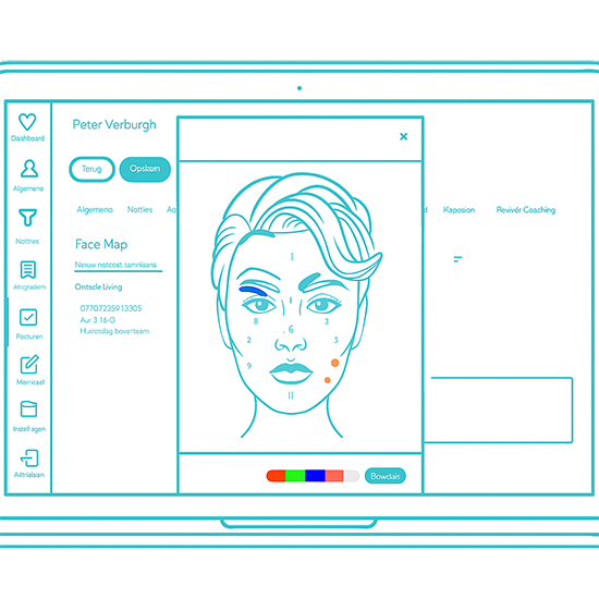 Koppel onbeperkt foto’s en gebruik klantspecifieke formulieren zoals pedicure, facemap, nagels, kapsalon of trimsalon.